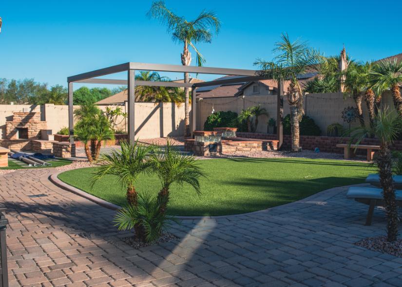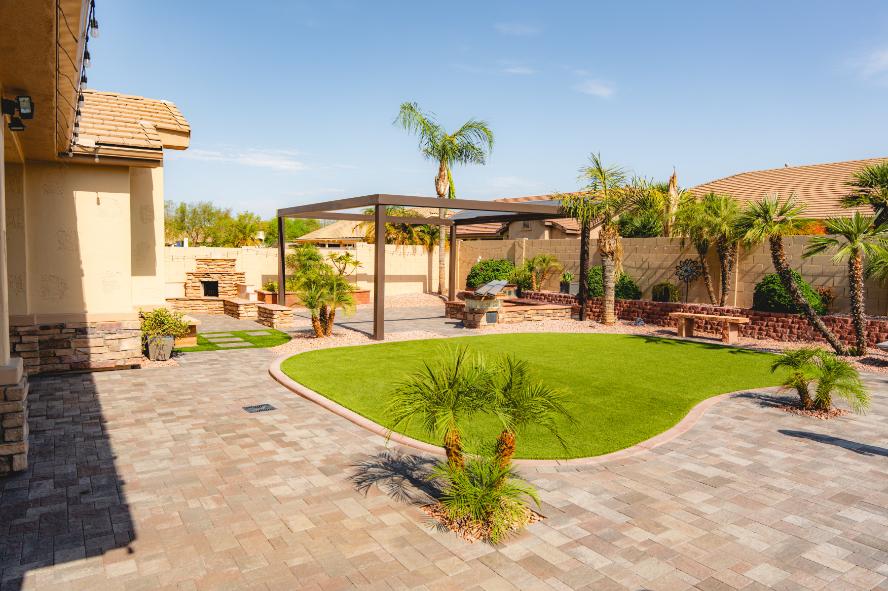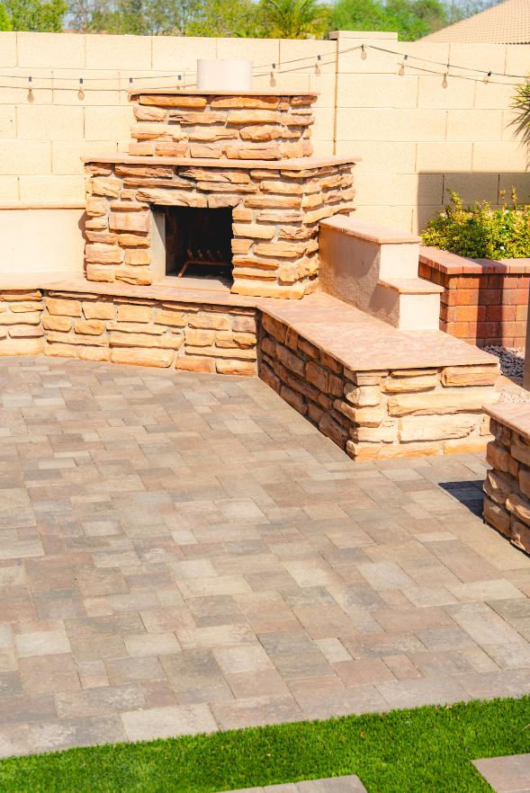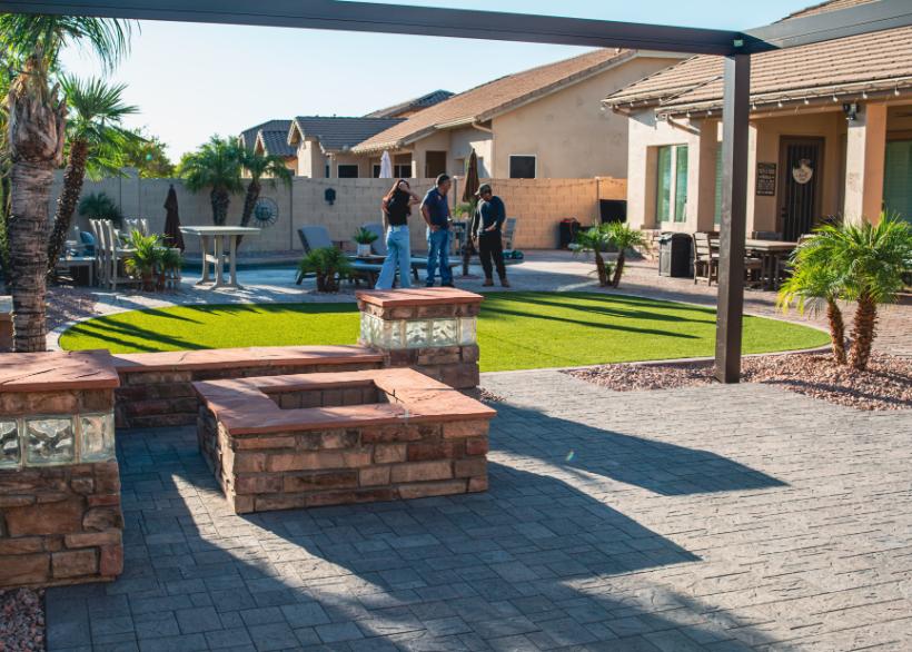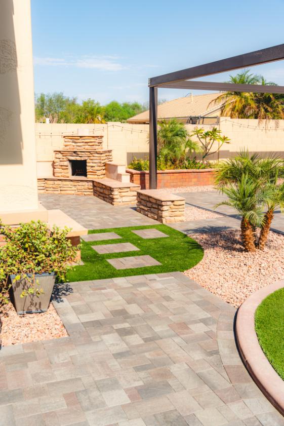 Peoria Backyard Renewal Project with Hardscaping & Outdoor Fireplace